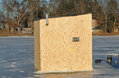 Froggy Ice Fishing Shack | Yeah, that looks pretty straight. | Typically placed out in Goef's Bay, 6 feet of water. Catch many fish in this unlikely spot. |